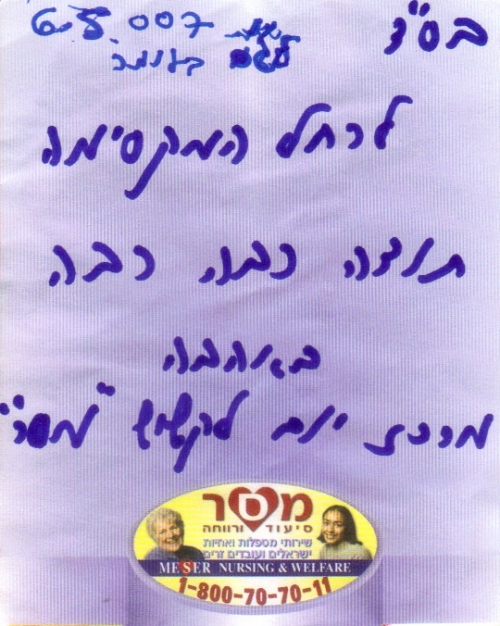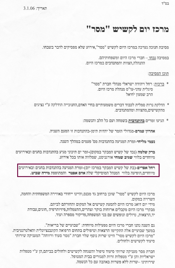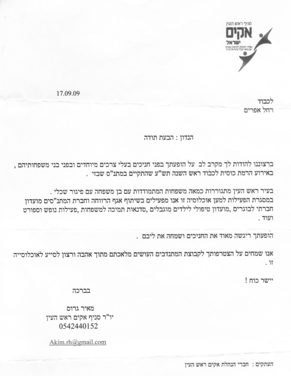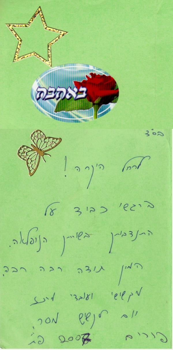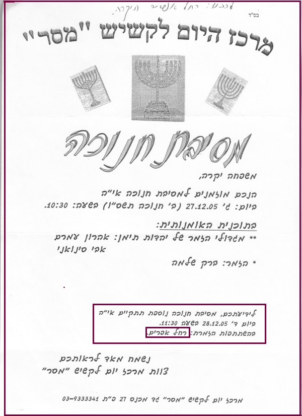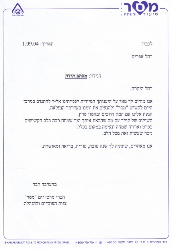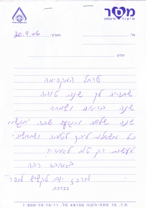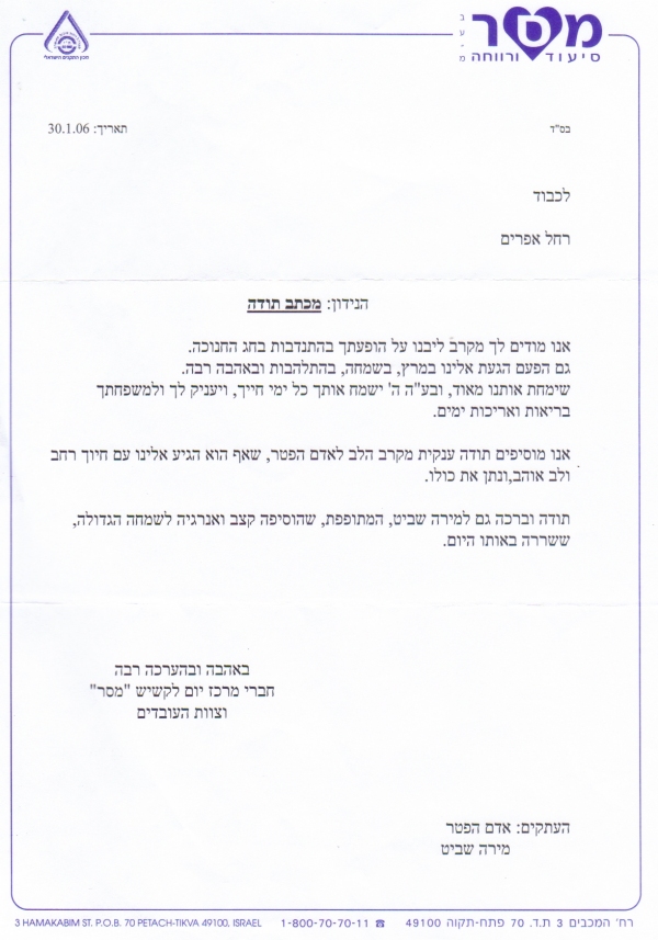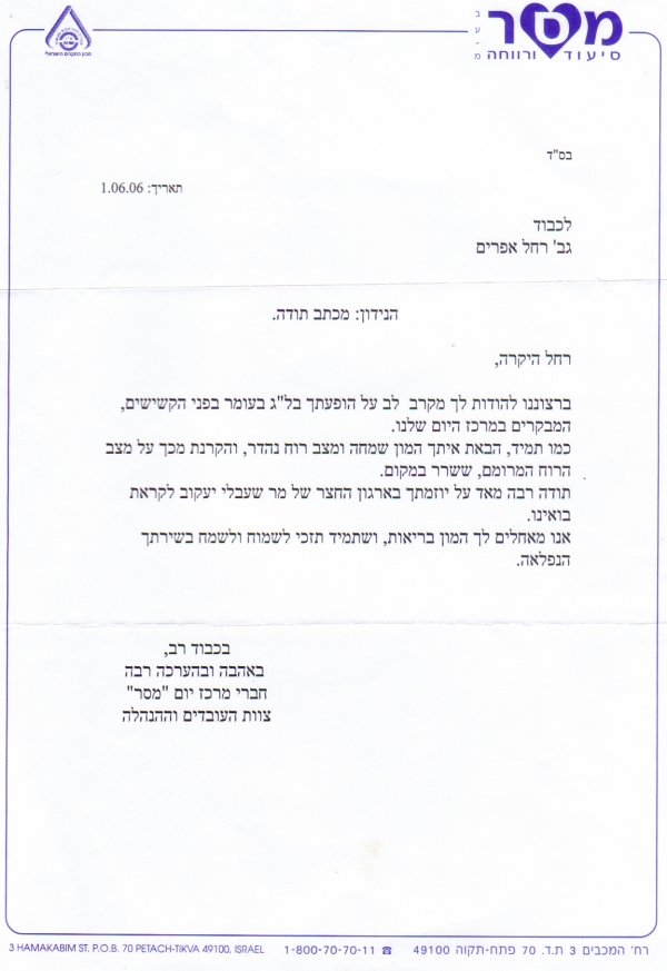 pix:ad05 album:adRe, period:31 ינואר 2006 descr:מכתב תודה על ההופעה במסיבת חנוכה של המכז לקשיש |
