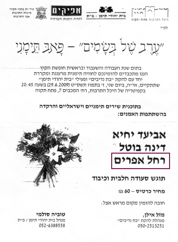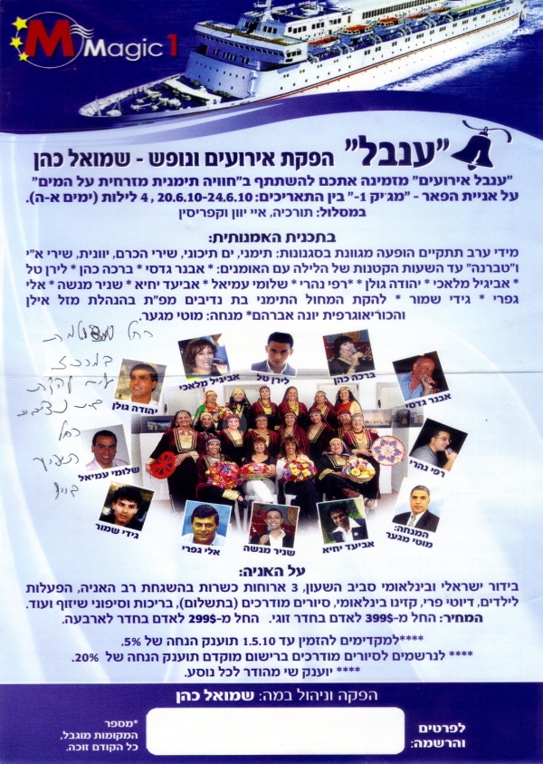 pix:ad06 album:adBn, period:יוני 2010 descr:הודעה על מופע בשייט נופש - רחל הופעיה עם להקת בת נדיבים |