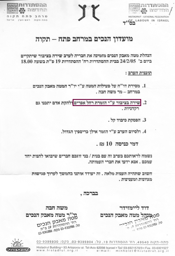 pix:clip01 album:adRe, period:ינואר 2005 descr:הופעה בהתנדבות במטה מאבק הנכים במועצת הפועלים של פתח תקווה |