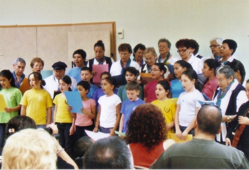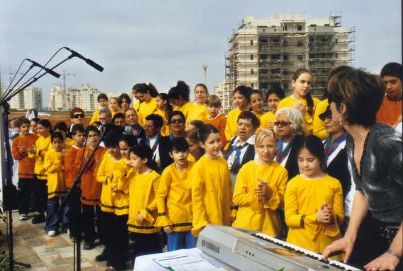 pix:cg08 album:pixCg, period:period descr:רחל עם הילדים בבי''ס הס שרים שירי ארץ ישראל |