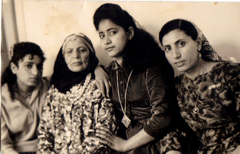 pix:family01 album:pixKid, period:1961 descr:רחל (משמאל) עם הסבתא סלמהת האחות שושנה ז''לת והאמא שולמית שושנה ורחל בתמונה זו בפגישת איחוד לאחר 12 שנות פרידה בהם לא ראו זו את זו |