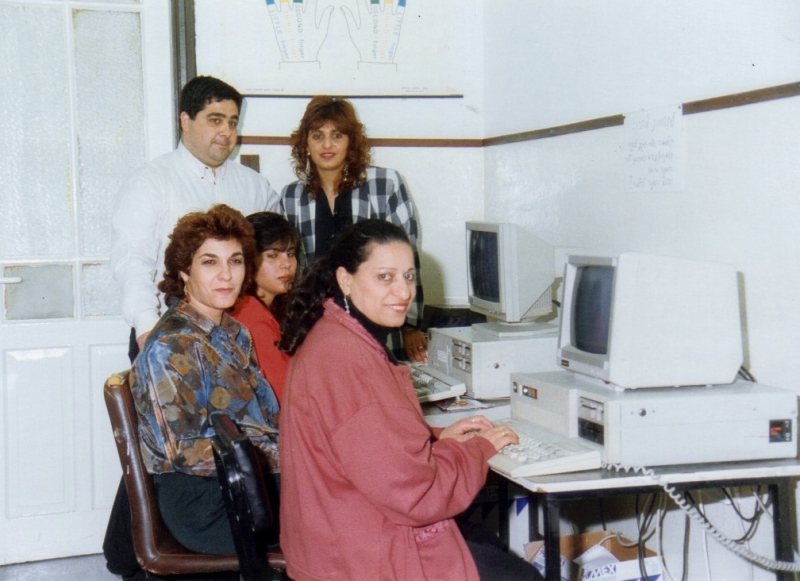 pix:wX06 album:pixBn, period:period descr:צילום פרסומת עם להקת בת נדיבים. במרכז טוביה סולמי-מנהל בית יהודי תימן |