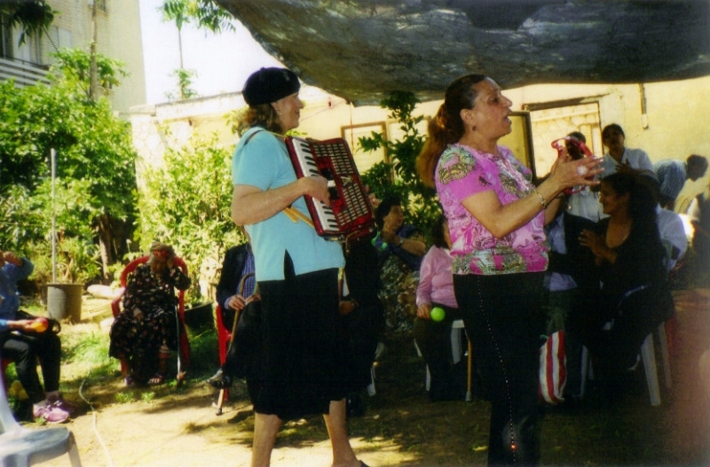 pix:ad01 album:adRe, period:28 Dec. 2005 descr:מסיבת חנוכה במרכז לקשיש עם הזמר והמתופף אהרון עמרם, והזמרים הים תיכוניים אבי סיניאני וברק שלמה |