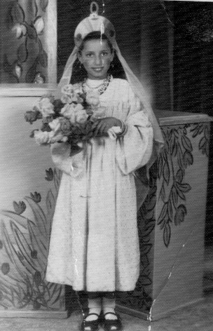 pix:girl02 album:pixKid, period:period descr:רחל בילותה בצילום מוזמן שנשלח לתימן שם שהו אביה ואחותה שושנה בזכות תמונה זו עלו האב והאחות ארצה בשנת 1961 |
