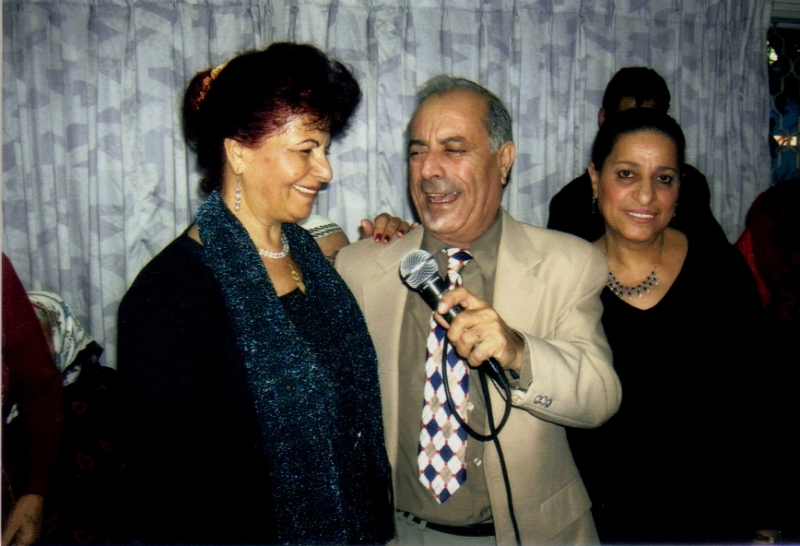 pix:wX05 album:pixBn, period:דצמבר 2005 descr:רחל בהופעה עם הזמר אהרון עמרם והזמרת נעמי מליחי |